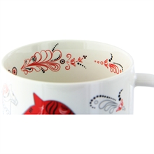 Mugg i porslin med fina tecknade motiv i kurbitsmönster och med dalahästar.