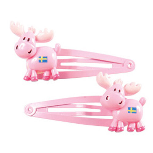 Hair clip, Moose, pink, 2-pack 6 cm